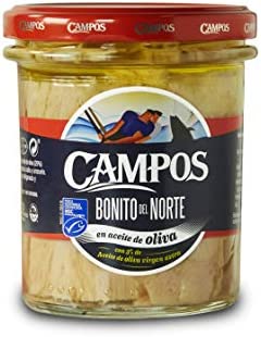 El Bonito del Norte Campos es una auténtica delicia gastronómica. Este pescado se envasa artesanalmente, conservando todo su sabor en aceite de oliva o escabeche. Su calidad excepcional lo convierte en el complemento ideal para tus comidas. Los lomos de bonito del norte, cuidadosamente seleccionados, son perfectos para degustar solos o acompañados de una delicada combinación de cebolleta o puerro finamente cortados. Disfruta de la frescura y el sabor incomparables del Bonito del Norte Campos, un verdadero placer culinario que no puedes dejar de probar.
